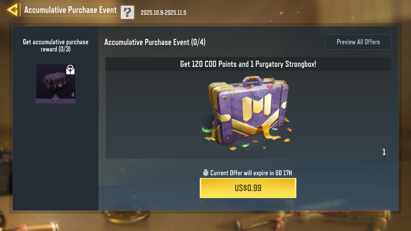 آفر 160 سی پی لیمیت تایم در لودات قسمت INVENTORY باز کنید این آفر بصورت انتخابی 120 سی پی و کارت طلایی یا 160 سی پی قرار گرفته.